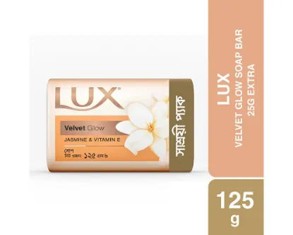 Lux Velvet Glow Jasmine & Vitamin E Soap 125gm is a luxurious beauty soap enriched with the goodness of jasmine extracts and vitamin E. It gently cleanses the skin while providing deep nourishment, helping to maintain natural moisture and softness. The elegant jasmine fragrance leaves a long-lasting, refreshing scent, enhancing your bathing experience. With regular use, it helps keep your skin soft, smooth, radiant, and healthy-looking. Suitable for all skin types, Lux Velvet Glow Jasmine & Vitamin E Soap 125gm is perfect for daily skincare, combining gentle care with a touch of luxury.
